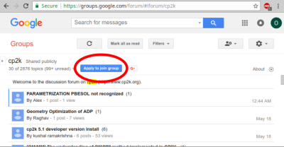 You can ask questions about CP2K usage in our Google Group. To join the group do the following:
