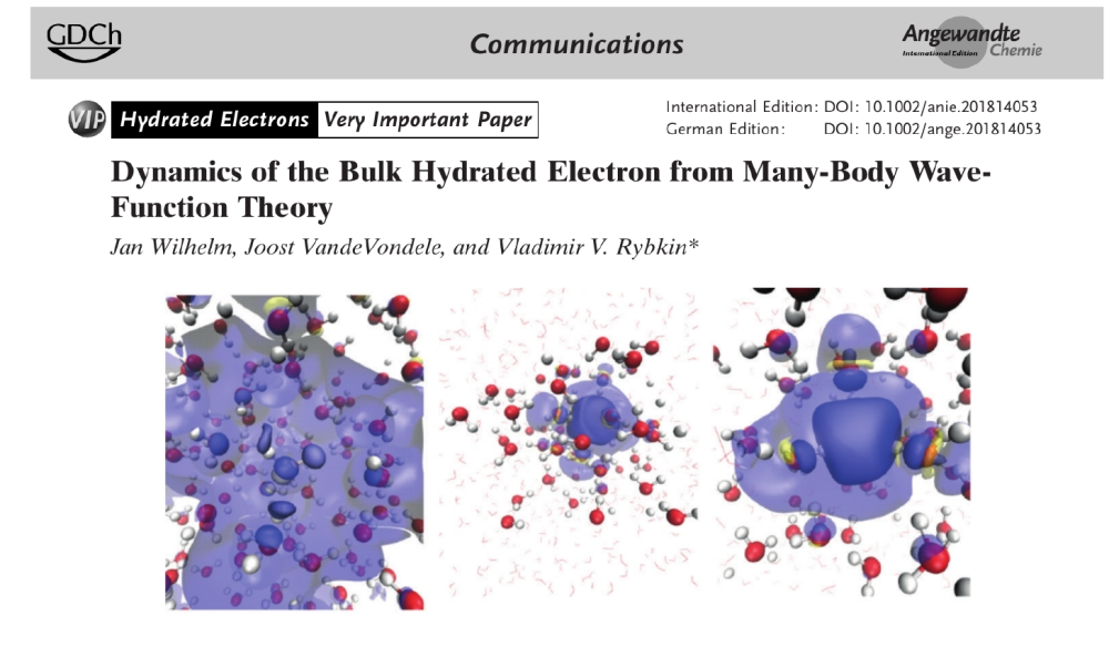 Jan Wilhelm, Joost VandeVondele & Vladimir V. Rybkin; 2019; Dynamics of the Bulk Hydrated Electron from Many-Body Wave-Function Theory Angewandte Chemie International Edition 58, 3890-3893 (2019)