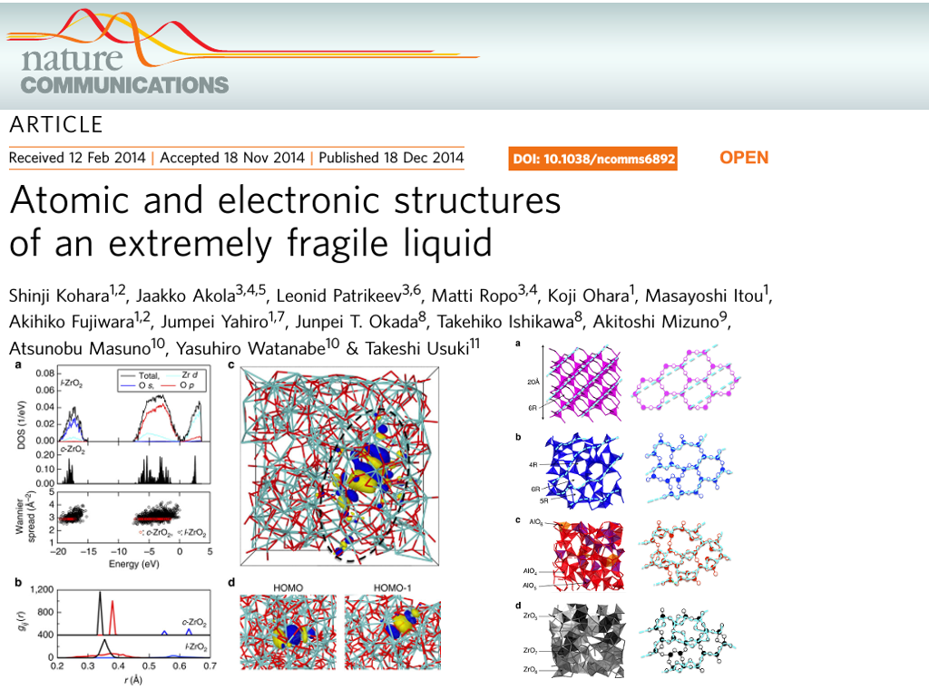 Atsunobu Masuno, Yasuhiro Watanabe & Takeshi Usuki; 2014; Atomic and electronic structures of an extremely fragile liquid