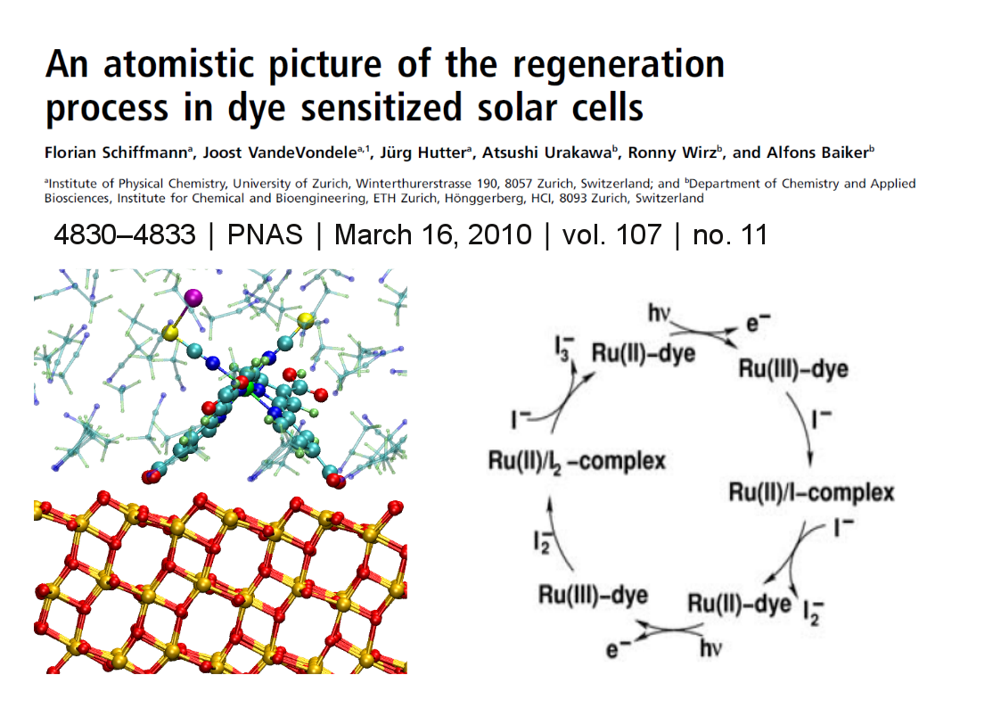 Dr. Jun Cheng, Dr. Xiandong Liu, Dr. John A. Kattirtzi, Dr. Joost VandeVondele, and Prof. Dr. Michiel Sprik; 2014; Aligning Electronic and Protonic Energy Levels of Proton-Coupled Electron Transfer in Water Oxidation on Aqueous TiO2