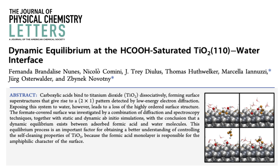 Fernanda Brandalise Nunes, Nicolò Comini, J. Trey Diulus, Thomas Huthwelker, Marcella Iannuzzi, Jürg Osterwalder, and Zbynek Novotny; Dynamic Equilibrium at the HCOOH-Saturated TiO2(110)−Water Interface JPCL 2023.